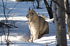 Canada lynx surveys the Boreal forest. Yukon, Canada.